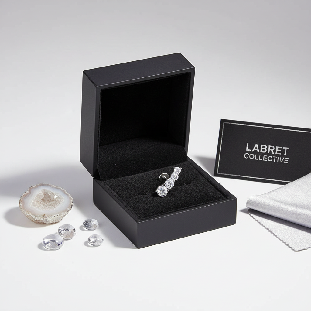 The geometric titanium labret earring is shaped for comfort. It uses secure screw backs to keep it in place all day. This makes it suitable for everyday wear or special events. The hypoallergenic metals help keep sensitive ears safe and comfortable.