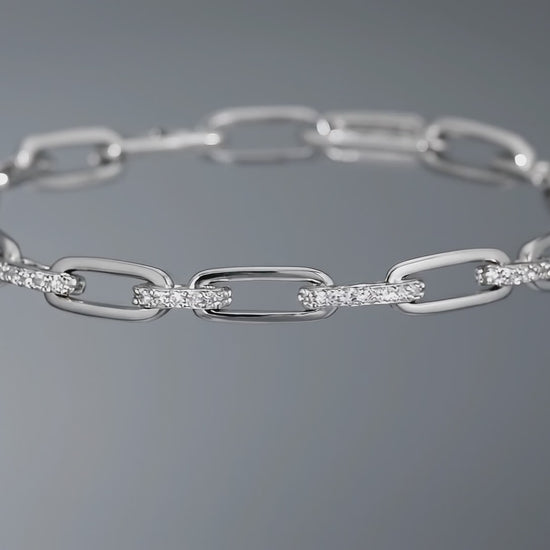 Discover the elegance of the Silver Paperclip Link Cubic Zirconia Bracelet. This bracelet has a clean and modern design. The links are crafted from high-quality sterling silver. Each link features sparkling cubic zirconia stones. This design adds a subtle shine to your wrist.