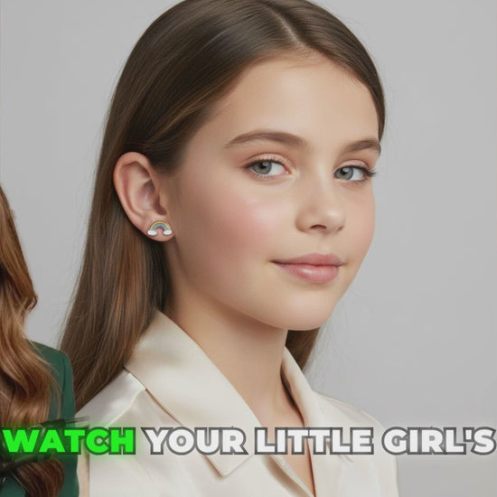 Silver rainbow earrings for girls are lightweight and comfortable. The secure stud backing keeps each earring in place during everyday play. These earrings are safe for sensitive ears. The sterling silver is gentle and no harsh metals are used.